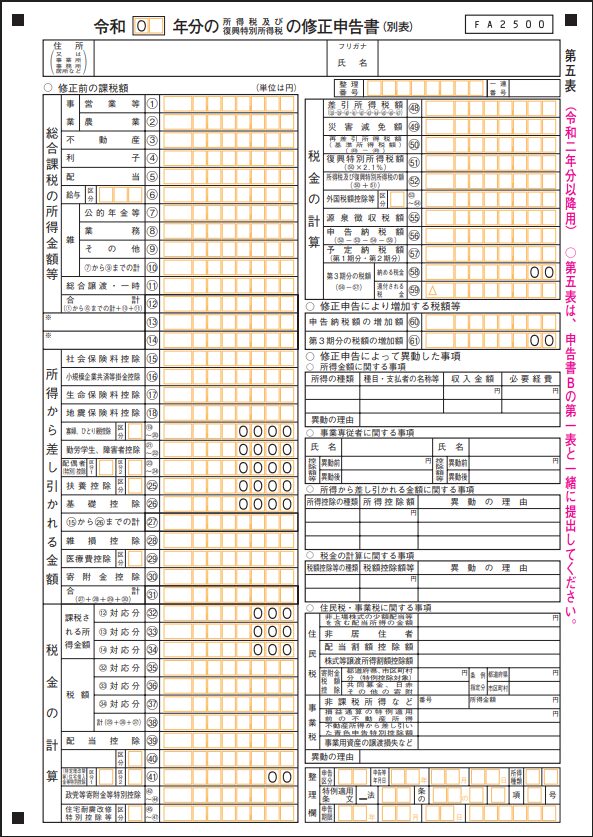 - 修正申告書の様式と記載例