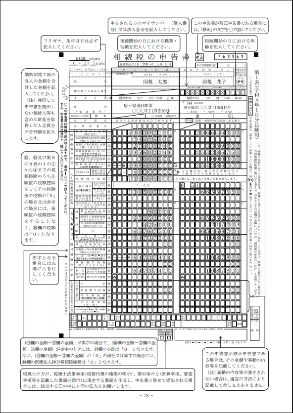<相続税の修正申告書:記載例>