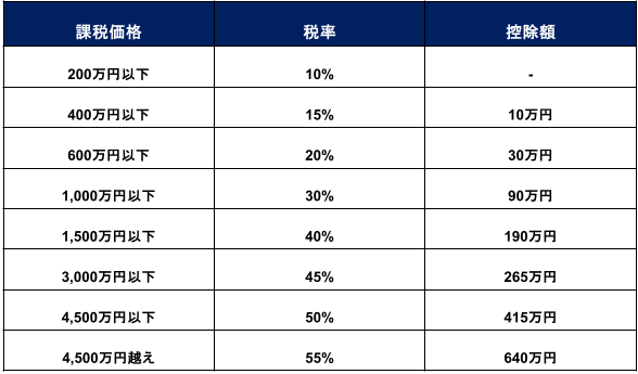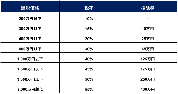 一般税率は、特別税率に比べて高く設定されています。兄弟姉妹から贈与を受ける場合は、支払う税額も高くなると考えておきましょう。